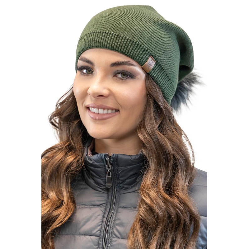 VIVISENCE Women's Hat with Large Bobble in Classic Style, Extended Back for Perfect Fit, Double Pleated Knitted Fabric, Ideal for Cold Winter Days, Green