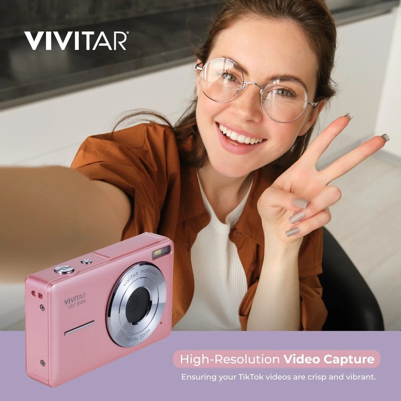 Vivitar Popsnap Digital Camera, Pink, 16x Zoom, 1080p, Micro SD, Single Pack