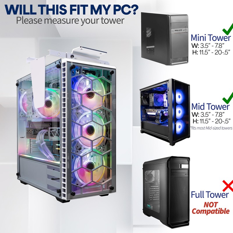 - Adjustable Frame - Fits most PC cases on the market with adjustable width from 3.5" to 7.8" and adjustable height from 11.5" to 20.5". Supports weights up to 22 lbs.