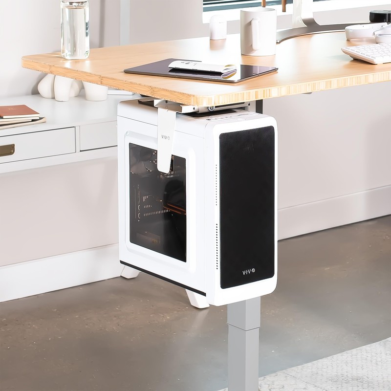 VIVO Adjustable Under Desk and Wall Mount for PC 3.5-7.8 inches Wide, Computer Case CPU Holder with Swivel and Secure Locking, White, MOUNT-PC01W