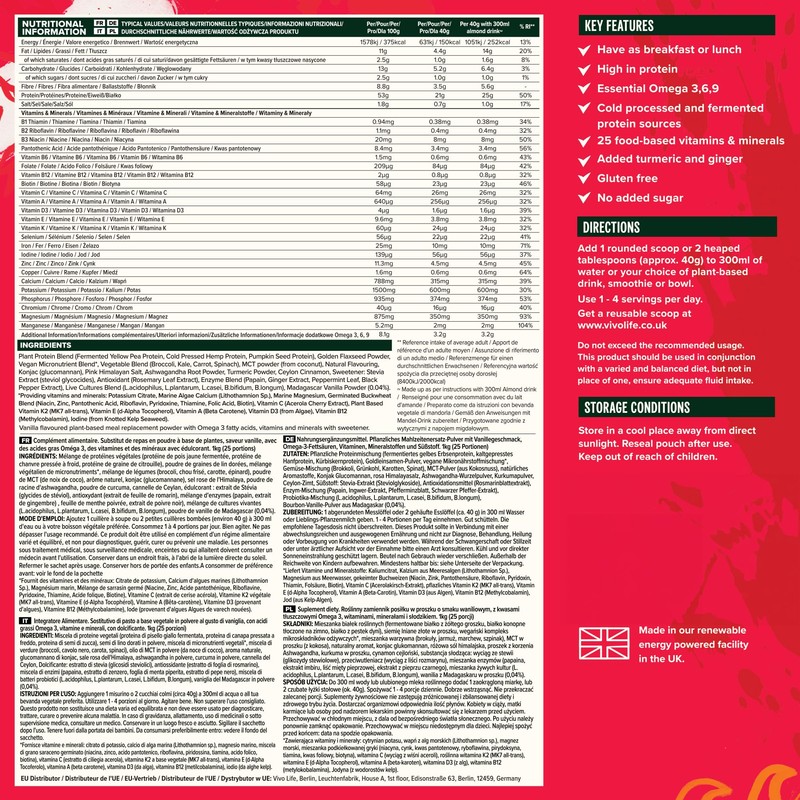 Vivo Life - Vegan All-in-One Vegan Meal Replacement Shake with Proteins, Vitamins & Minerals - 1 kg, 25 Servings (Vanilla)