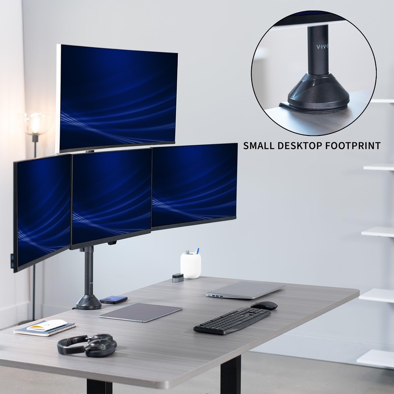 VIVO Premium Quad Ultra Wide LCD LED 27 to 38 inch Monitor Desk Mount, Heavy Duty C-clamp, Extra Tall Pole, Adjustable Telescoping Arms, Flush Wall Setup, Fits 4 Screens, Black, STAND-TS4CT