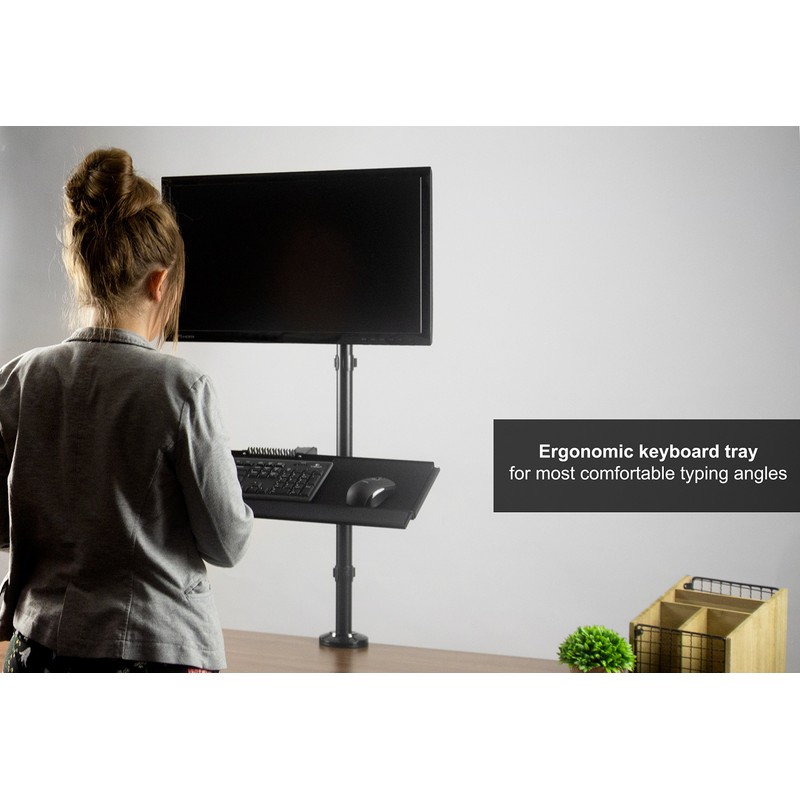 VIVO Sit-Stand Height Adjustable Pneumatic Spring Arm Keyboard Tray Desk Mount for 1 Screen up to 32 inches STAND-SIT1B