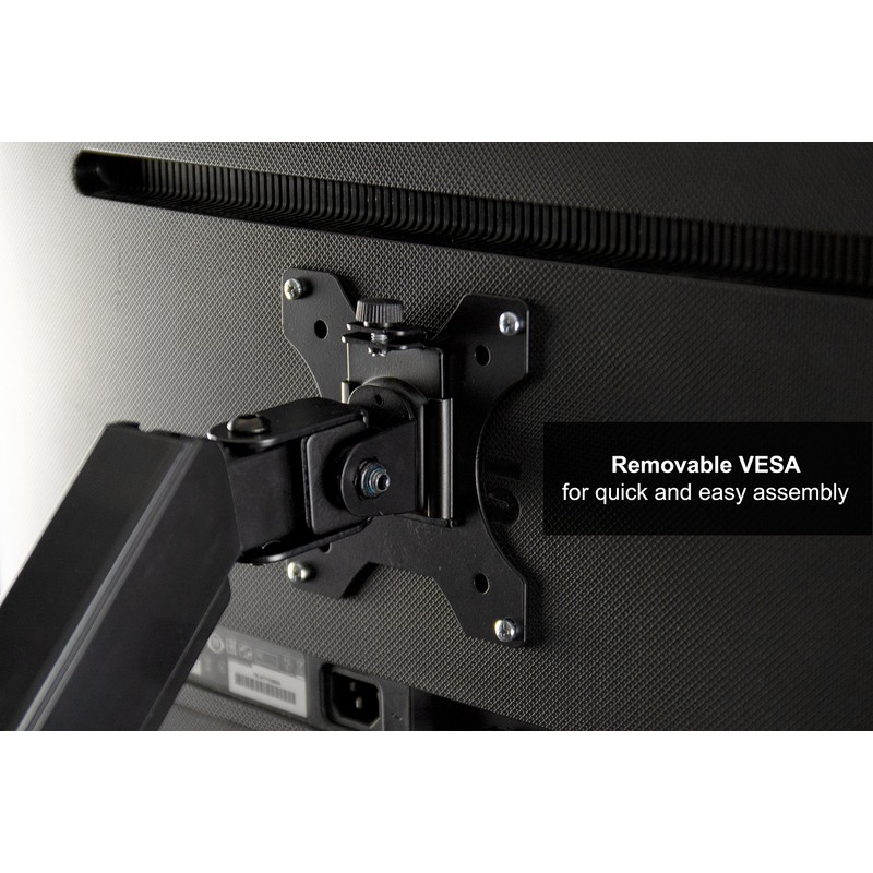 - EASY ASSEMBLY is ensured with a removable VESA plate containing 75x75mm and 100x100mm mounting holes that attaches to the back of your monitor and slides directly onto the mounting bracket for fast and easy installation.