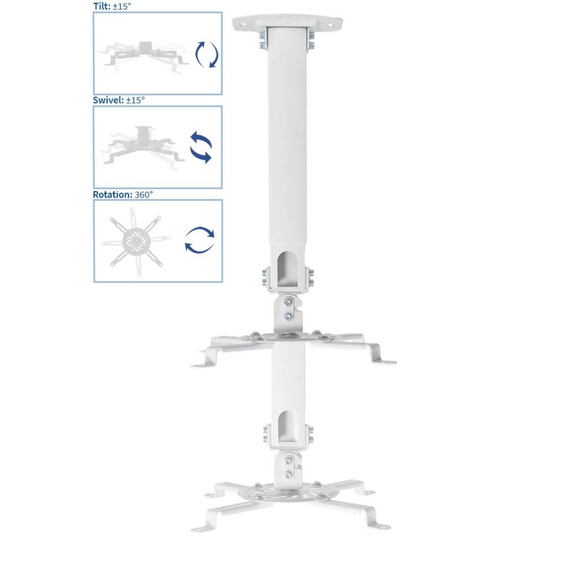 Adjustable mounting system extends your projector from 15” to 23” from the ceiling surface