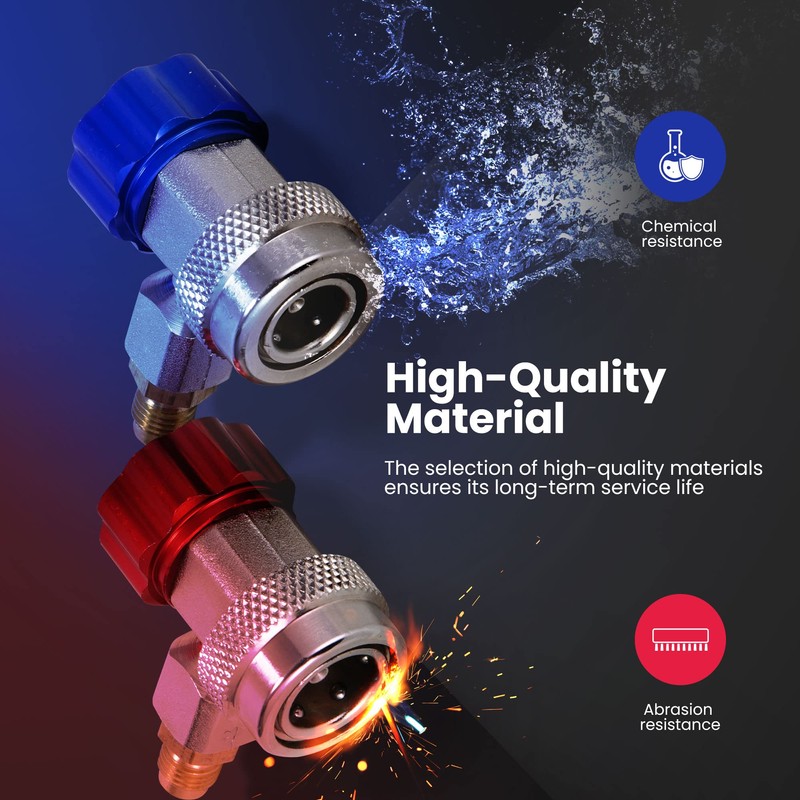 - ADJUSTABLE R134A COUPLER - This VIVOHOME high and low-pressure couplers can be opened or closed through the blue and red knob, which will reduce the wear of taking off and installing and improve the safety