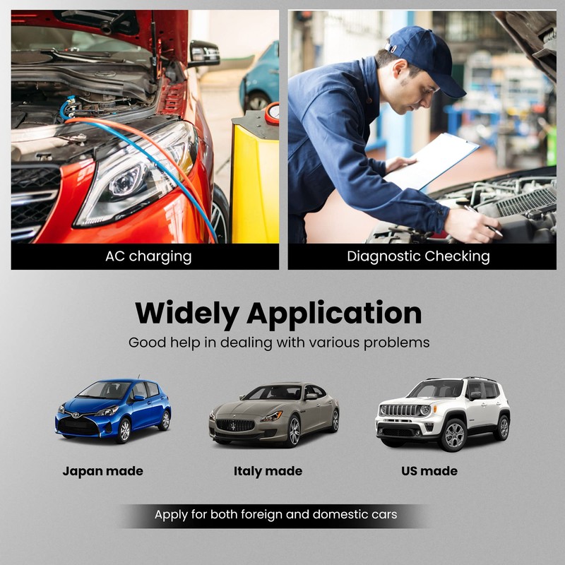 - Compatible with standard AC manifold gauge, used for different work (AC evacuation (vacuum), diagnostic check, coolant charging, and recovery work.)