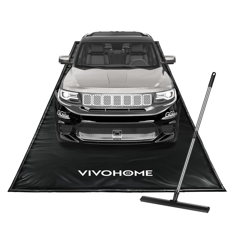 VIVOHOME Containment Mat (7'9" x 16') with Stay Put Corner, PVC Garage Mats for Floor, Heavy Duty Garage Parking Mat with a Squeegee
