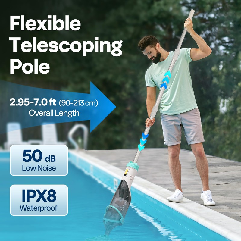 VIVOHOME Cordless Pool Vacuum with Telescopic Pole, Powerful Suction up to 18.5 GPM, 60 Mins Running Time, Handheld Rechargeable Swimming Pool Cleaner for Pools/Spas/Hot Tubs - Green