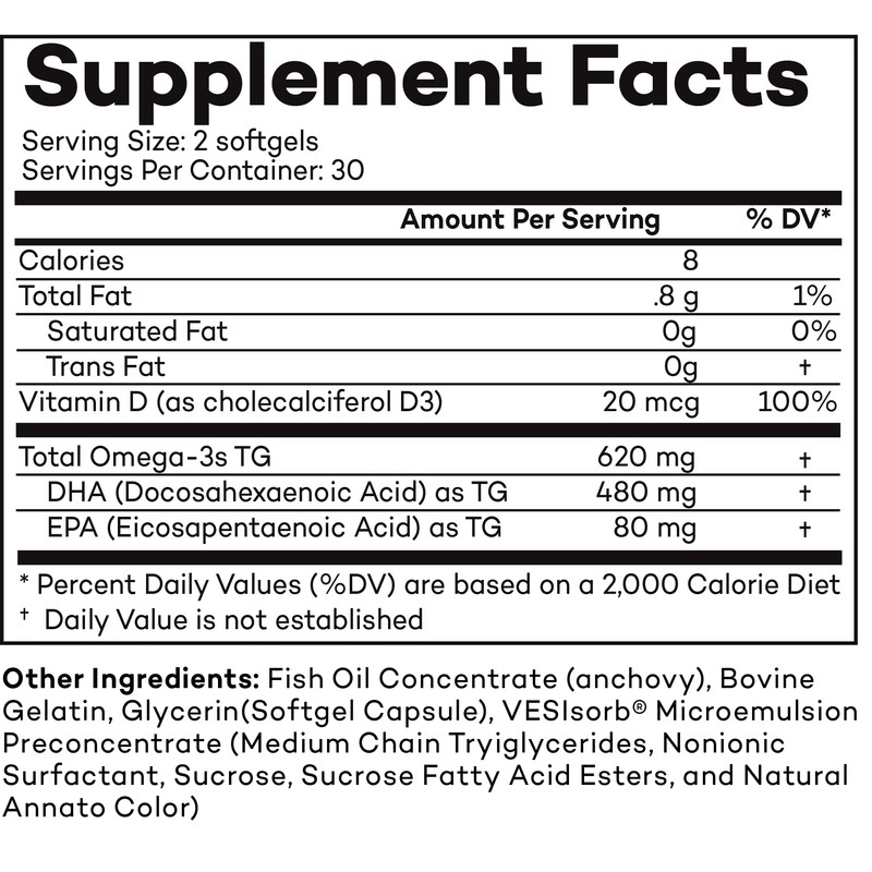 - PATENTED ABSORPTION TECHNOLOGY: Utilizes patented VESIsorb biomolecular absorption/delivery technology to dramatically improve the absorption and bioavailability of the omega 3s.
