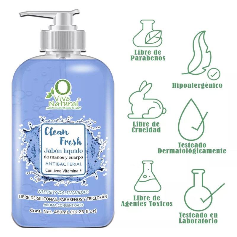 JABÓN LIQUIDO PARA MANOS CLEAN FRESH ANTIBACTERIAL.