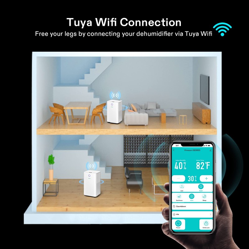 - Ergonomic Design: Large control panel for easy operation; 4 wheels at the bottom and rear handle for easy movement; Runs at ≤38 dB without disturbing your sleep; Free your legs by connecting your dehumidifier via Tuya Wifi