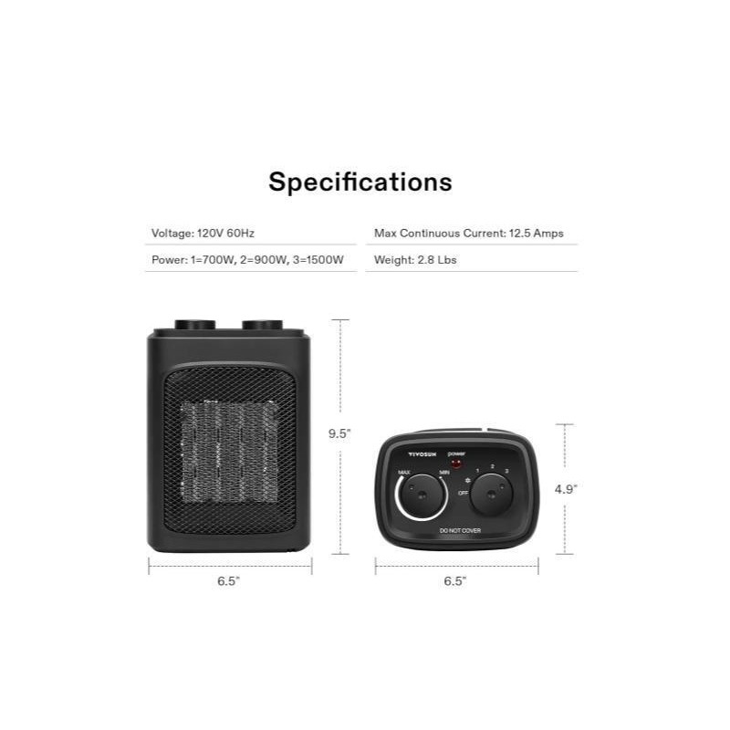 - 4 Modes for Year-round Use: Features three heating modes (Low - 700W, Medium - 900W, High - 1500W) plus a fan-only cooling mode; Satisfy heating needs during winter months or enjoy refreshing airflow in warmer weather; More targeted and cost-effective than central air conditioning system