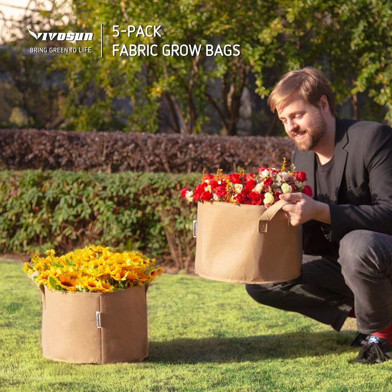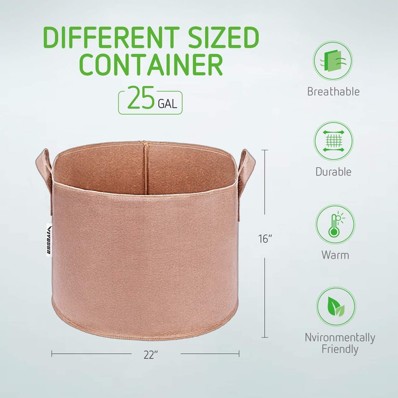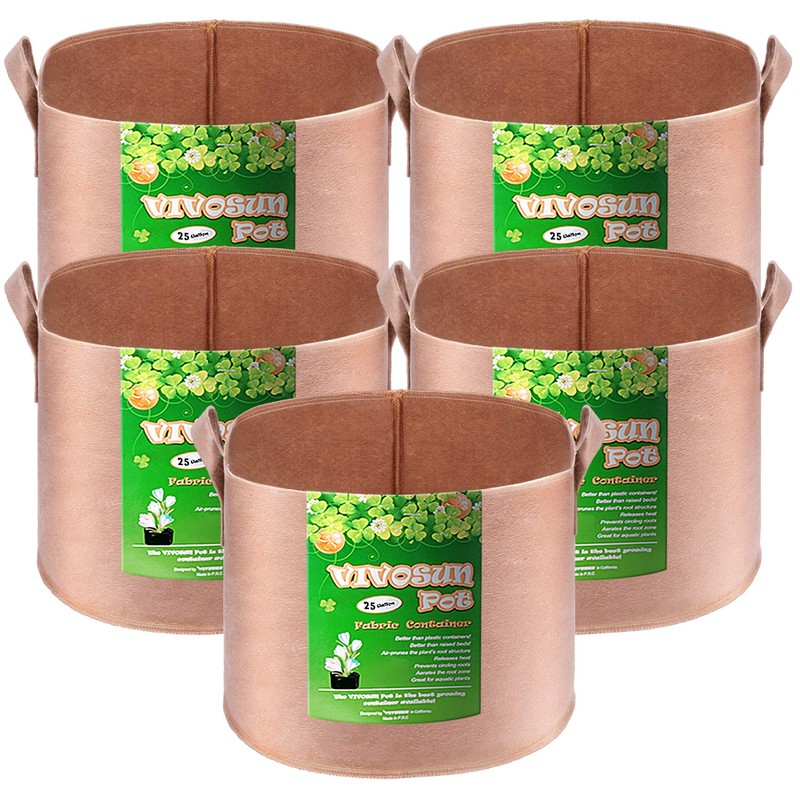 VIVOSUN 5-Pack 25 Gallons Grow Bags Heavy Duty Thickened Nonwoven Fabric Pots with Strap Handles Tan