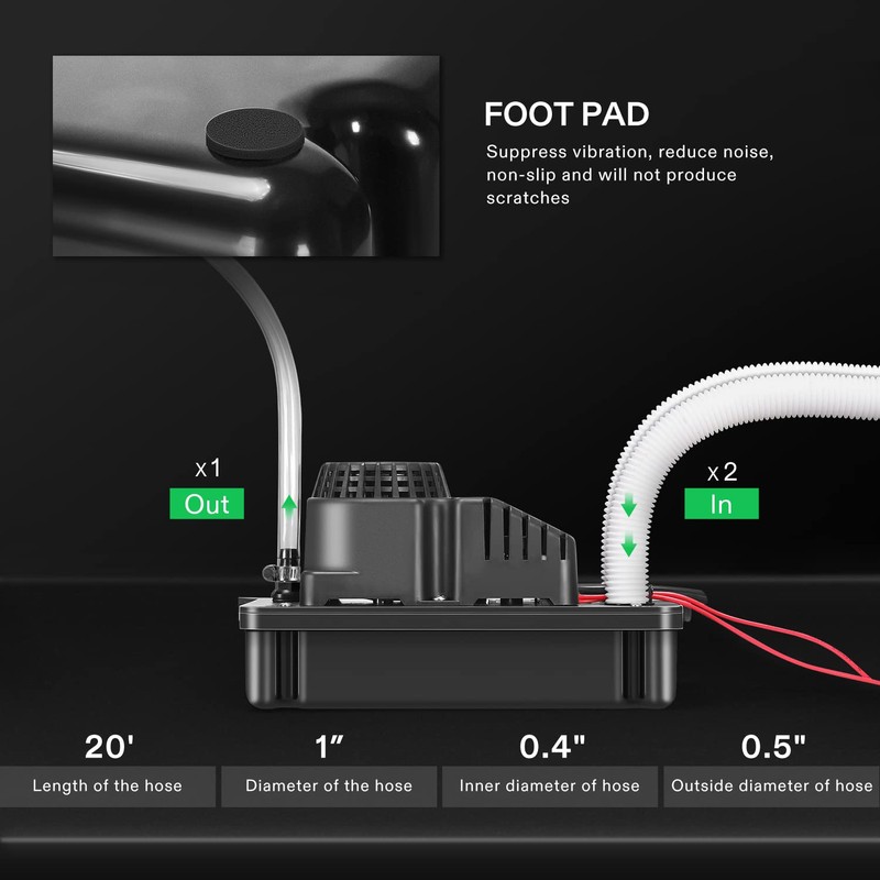 - Excellent Craftsmanship: Includes a non-reverse ball preventing water backflow through the outlet pipe; Impeller is securely attached and the device includes two wiring methods for various needs; Includes a foot pad for reduced noise and vibration and non-slip, and hanging installation