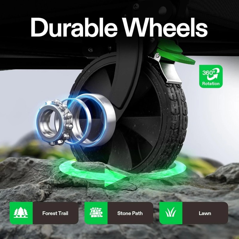 • Silent Universal Wheels: Equipped with silent, 360° swivel front wheels that move smoothly over any terrain with minimal noise; Wheels are removable and replaceable; With brakes that allow you to easily lock the cart and prevent slipping on slopes