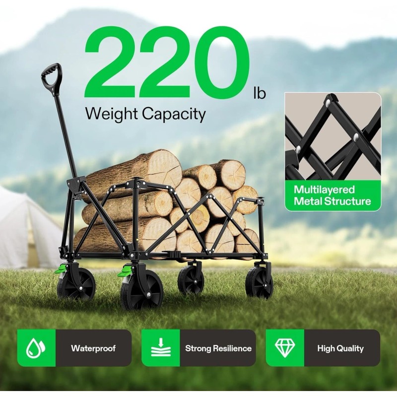 • Adjustable Handle: The wagon boasts a smoothly rotating, 90° adjustable handle for easy pushing and pulling; The handle locks securely in place, eliminating concerns about an uncontrollable wagon