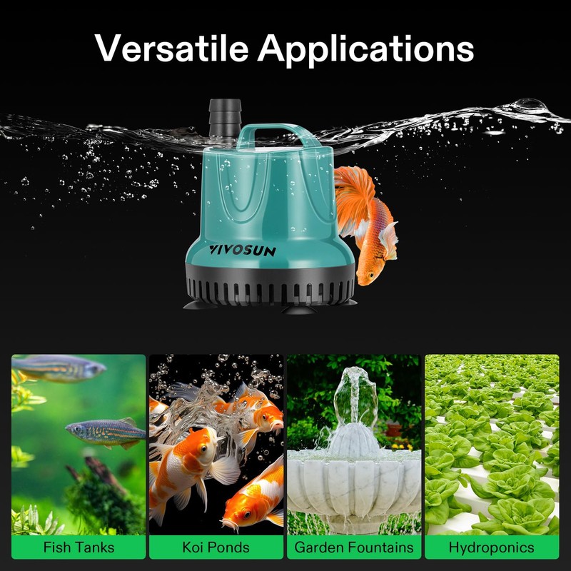 - Versatile Applications: Equipped with detachable water outlet and includes 1/2", 5/8", and 3/4" adapter sizes for compatibility with various pipe diameters; Ideal for fish tanks, ponds, aquariums, hydroponic systems, fountains, waterfalls, and more
