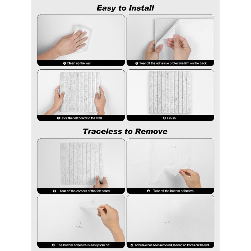 - Removable Adhesive Tabs: Strong acrylic adhesive tabs ensure that the panels stay firmly attached to the wall while being easy to remove without leaving any residue or damaging the wall. Additionally, extra removable eco-friendly tabs are included, providing flexibility and convenience, allowing you to reposition the panels as needed.