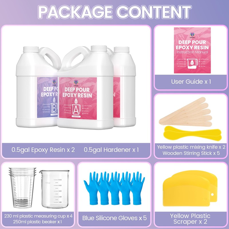 - Durable & Scratch Resistant: Our deep pour resin epoxy is hard as a rock after curing, which hardness can reach 85D. Besides, it is also scratch-resistant, which makes your DIY crafts are better protected