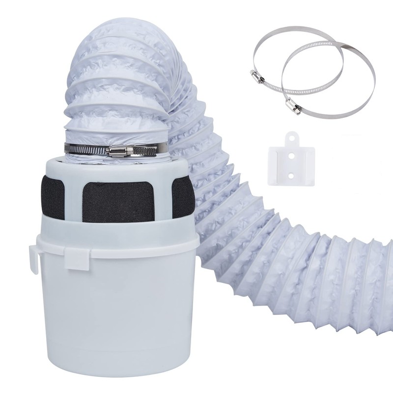 VIWINVELA Indoor Dryer Vent Kit Bucket Lint Trap Dryer Vent with 4-Inch by 5-Feet Double Layer Proflex Duct (White)