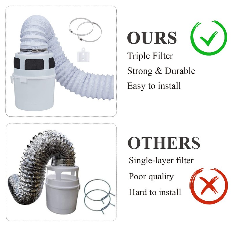 • Quick and easy to install, please note that when you snap the hose to the filter bucket and the dryer it may be a little laborious, this design makes the connection more stronger