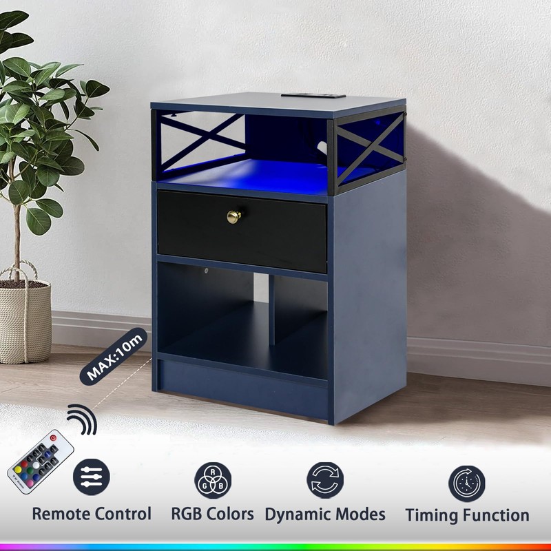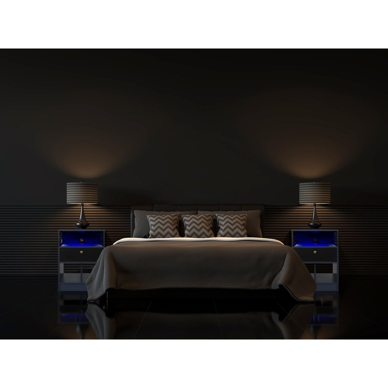 - Vibrant RGB Lighting: Equipped with a remote controlled RGB light strip offering 20 static colors, 22 dynamic modes, 10 speed grades, and 5 brightness levels. Whether you desire a soft glow or a lively multicolor display, this night-stand with light adapts to your every whim