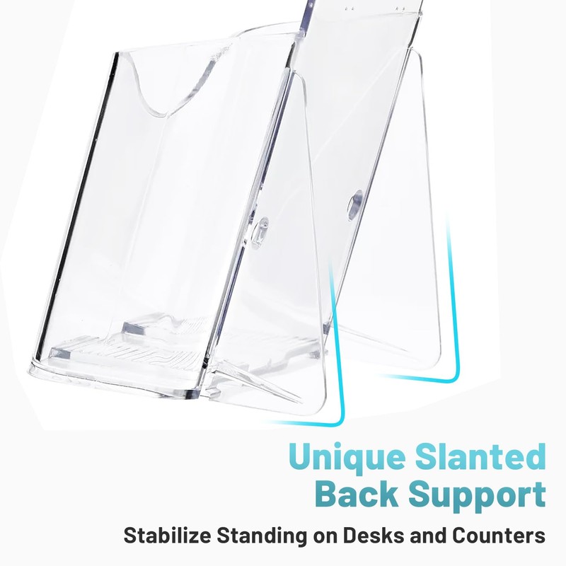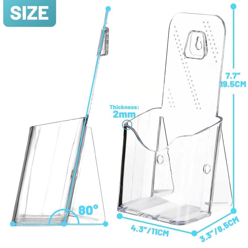 - Sturdy Premium AcrylicThe brochure display stand is made of high-quality acrylic, they are transparent and solid, providing long-lasting use; The pamphlet holder's slanted back design ensures a perfect display effect, increasing the likelihood of the brochures being noticed and picked up, thereby enhancing brand awareness.