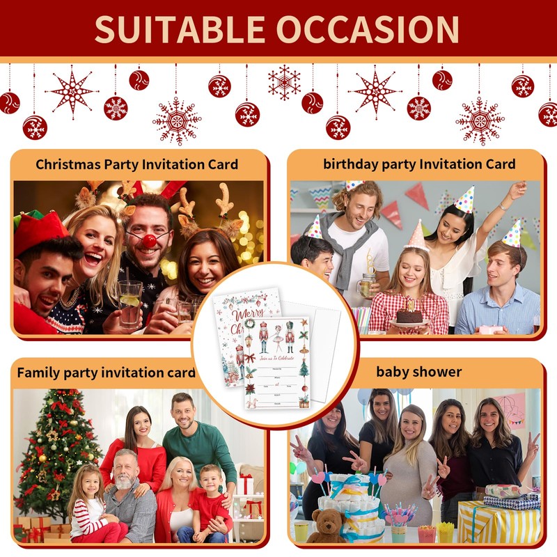 Viynran 25-Pack Christmas Party Invitation Cards Kit – White Nutcracker Theme...