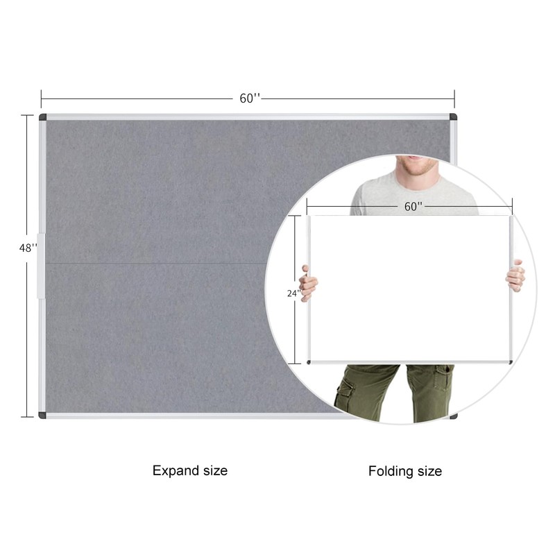 - [High Quality Details] Gray Felt surface, Anti-scratch silver finished aluminum frame, ABS plastic corner with screw-fixing in corners. It can be folded in half for saving a space and more reliable transit. This board will add a classic look to your office or home