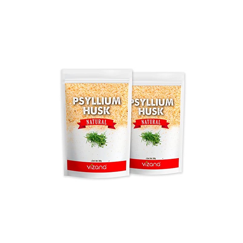 VIZANA NUTRITION Psyllium Husk Natural, 600g Sin Azucar, Cscara de Psyllium (Pack-2 Bolsas de 300g), Origen India