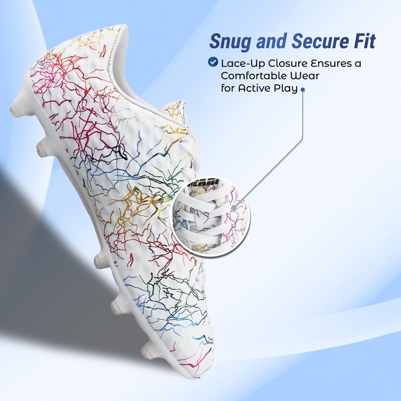 - LIGHTWEIGHT COMFORT FOR ALL-DAY PLAY: Engineered for soft, lightweight comfort—your child can run, kick, and play without complaining of tightness or bulk. Soft interior lining and cushioned insoles keep kids soccer shoes and youth soccer cleats boys happy on and off the field.