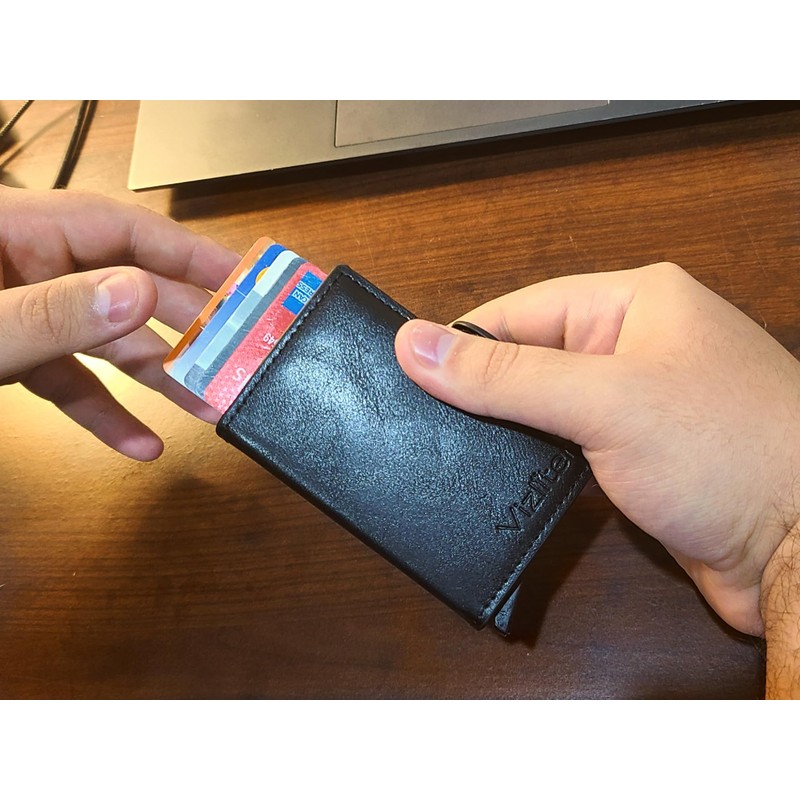 - Convenient pop-up function for all cards to slide out gradually, makes it so easy to find which card you're looking for. The cards will not fall out and the perfect smart wallet. No problem to keep it in your front or back pocket. No breaking, no bending