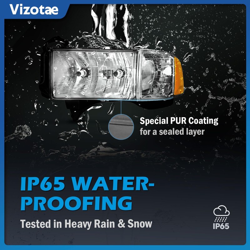 Vizotae Headlights Assembly for 1999-2001 Dodge Ram 1500 with Corner Parking Turn Signal Marker Lights, High/Low Beam W/Bulbs, Driver & Passenger Side