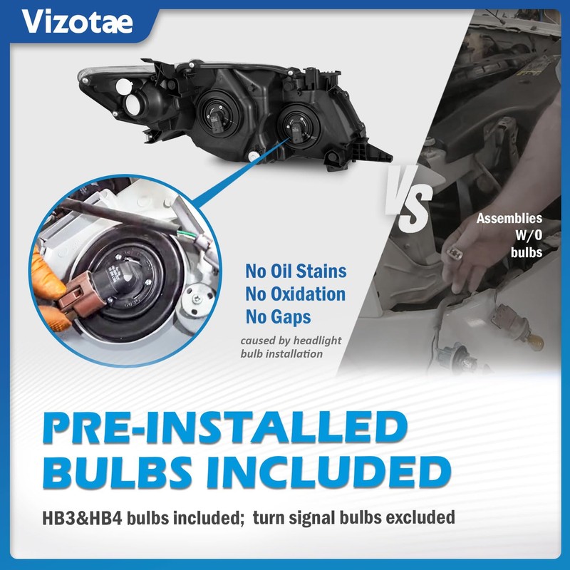 Vizotae Headlights Assembly for 2009 2010 Toyota Corolla Halogen Headlamp Replacement, High/Low Beam W/Bulbs, Driver & Passenger Side
