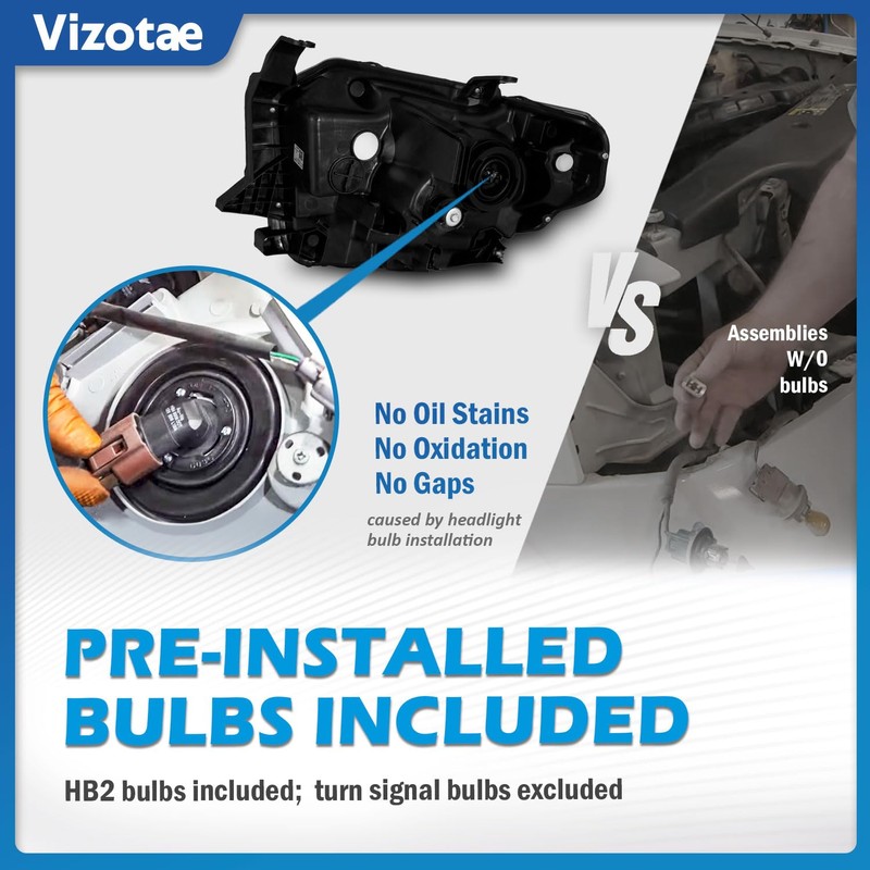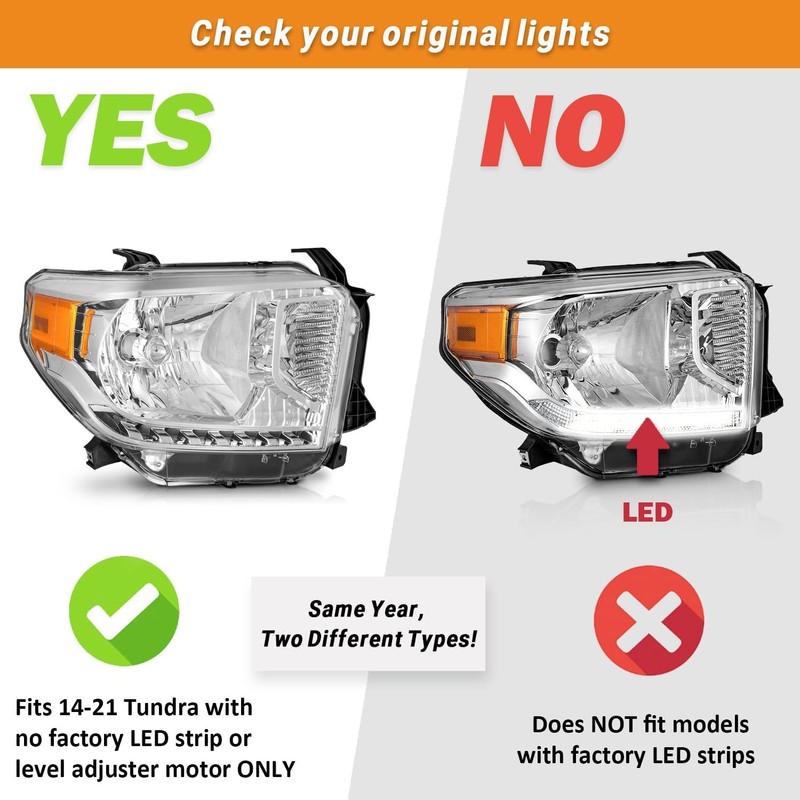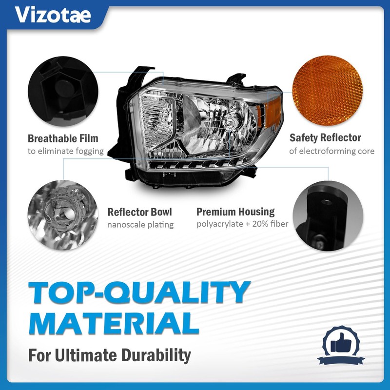 Vizotae Headlights for 2014-2021 Toyota Tundra, Not For Models W/Adjustable Headlight Leveling Dial/Buttons *Not Compatible* w/Factory LED DRL Models, High/Low Beam W/Bulbs, Driver & Passenger Side