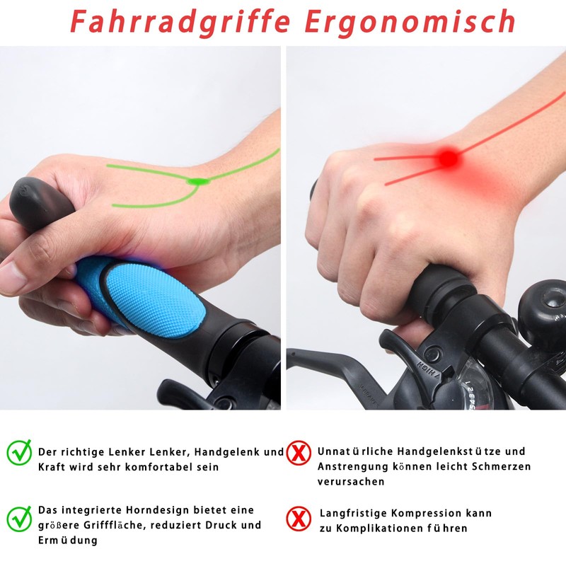 - Easy to install: our handlebar grips fit all standard handlebars with a diameter of 22 mm. With the included mounting tool, you can easily assemble and adjust the handles. Our handlebar grips are suitable for mountain bikes, road bikes, city bikes, e-bike/BMX MBT, trekking bikes and exercise bikes and offer you maximum comfort and control