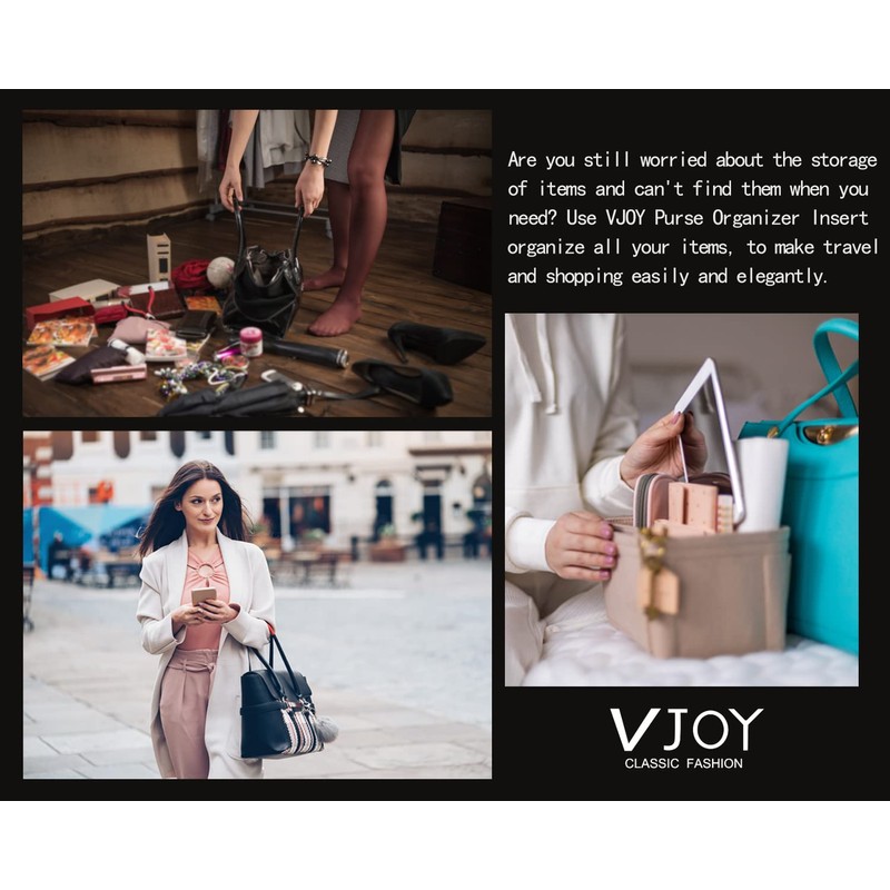 - EASY TO CHANGE: VJOY handbag organizer insert with detachable Inner partition can meet your needs for different spaces or avoid stuffs mixing inside the organizer. Change your purse in a second without rearranging the stuffs of your purse, won't waste your precious time.