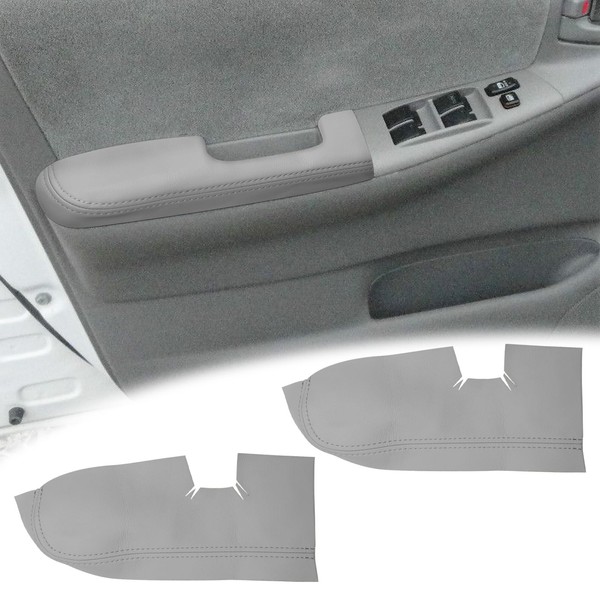 VKGUG 2PCS Front Door Panel Armrest Cover Replacement Compatible with Toyota Corolla 2003-2008 Left and Right Leather Arm Rest Replaced Skin Upholstery Gray (Only Leather Part)