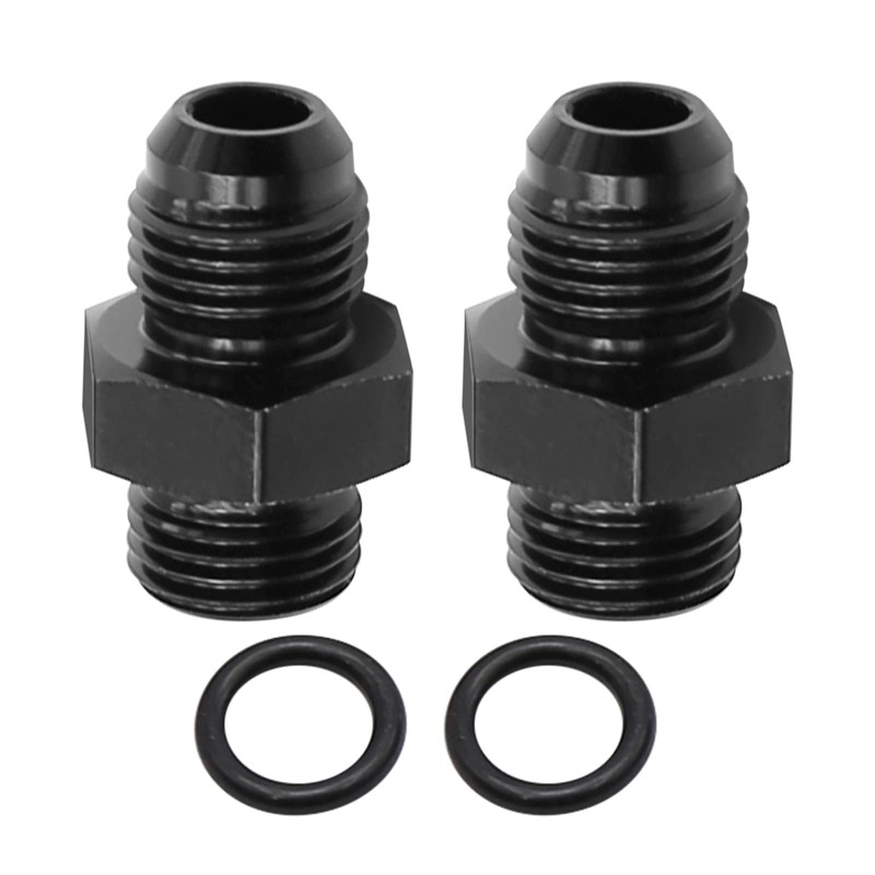 Vkinman 2Pcs 6AN Flare To 6AN ORB Male Fuel Rail Adapter Fitting Aluminium O-Ring Fitting Adapter for Fuel Line Hose Black
