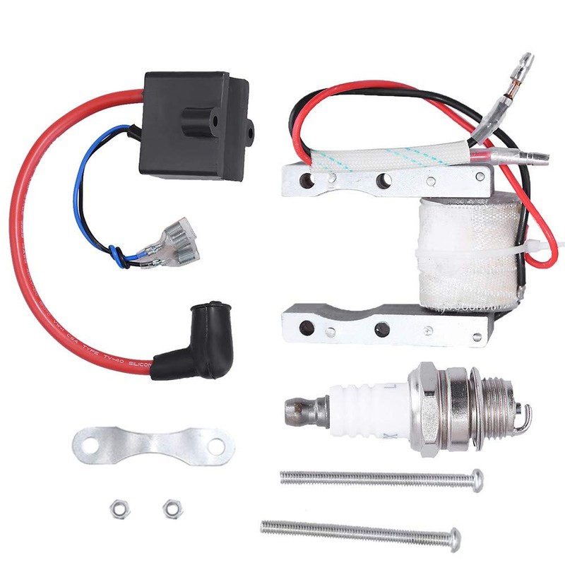 - Package includes: 1 x Magneto coil. 1 x CDI ignition coil(with mounting parts). 1 x spark plug.