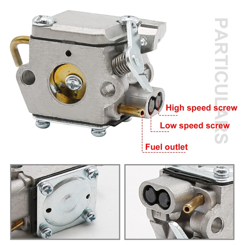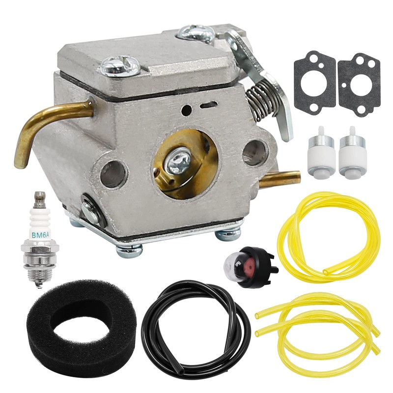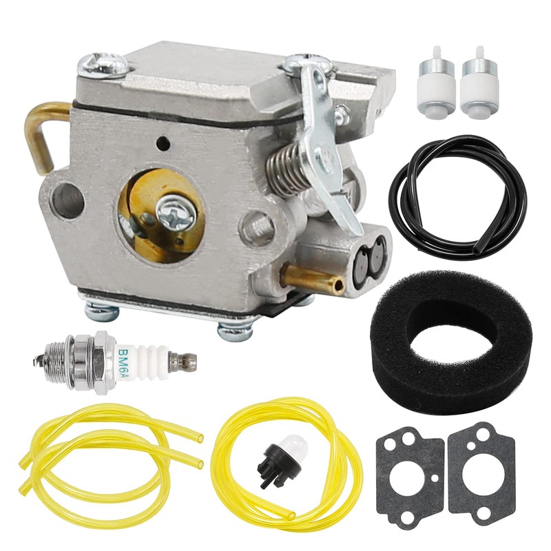 - Package includes: 1x carburetor, 1x primer bulb, 1x air cleaner, 1x fuel filter, 3x fuel lines, 2x gaskets, 1x spark plug.
