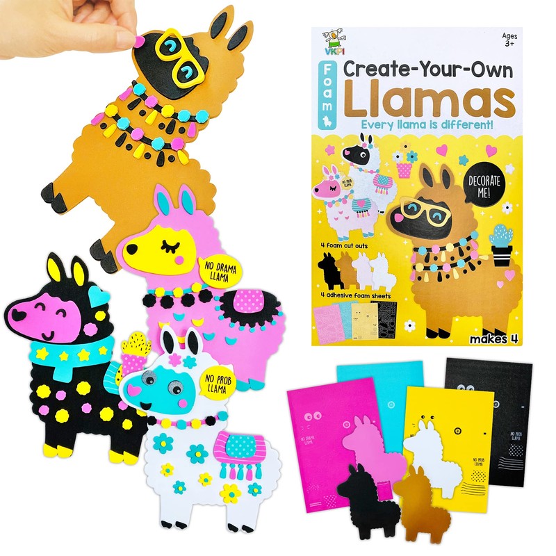 VKPI 4 Pieces EVA Foam Art Crafts Gift Kit, Creative Make Your Own Llamas, Cartoon Foam Paper Craft Projects for Kids Ages 4+ Toddler, Preschool Learning Toy for Birthday Party Favor Supplies