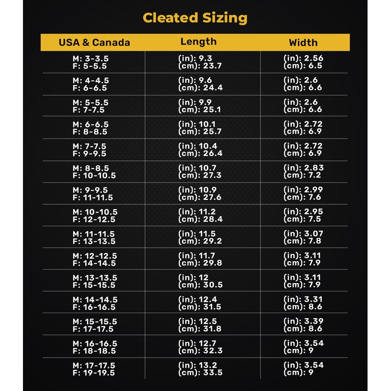 | Size: | US - M: 10-10.5, W: 12-12.5 - Cleated |