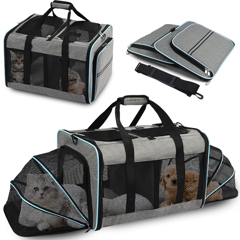 VKYSTAR Portable 2-in-1 Pet Carrier,Double Compartment Cat & Dog Carrier for 2 Cats,Expandable Medium Dogs Large Cat Carrier with Sturdy Base,Breathable,Good for Traveling Walking Camping(Blue)