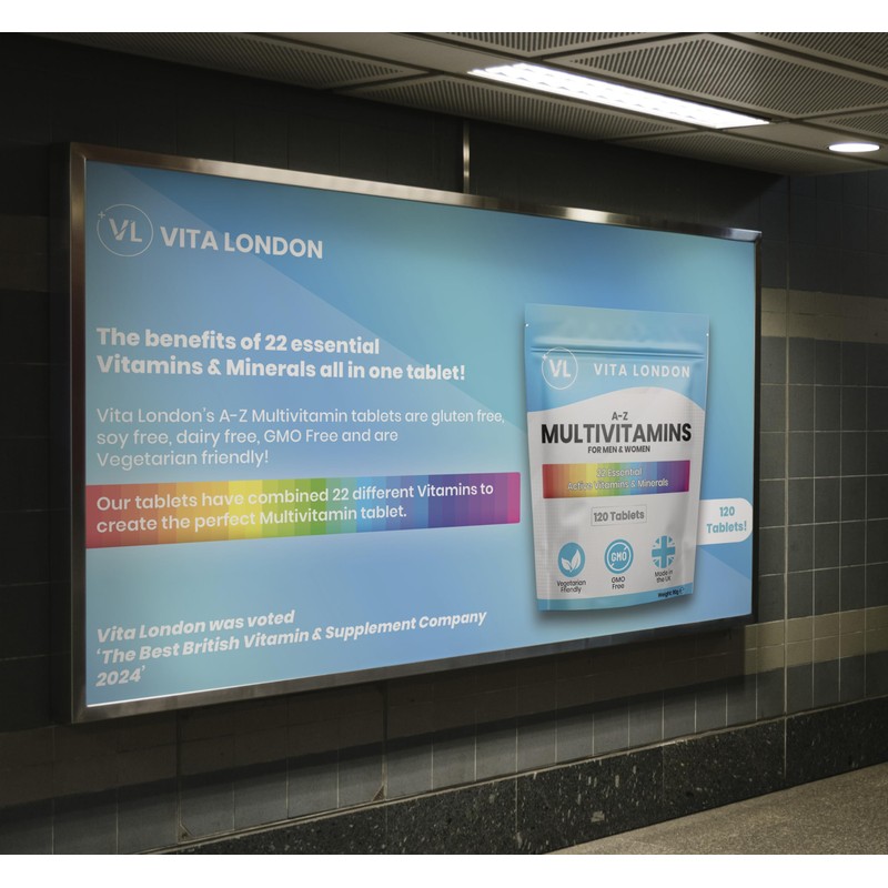VL Vita London Multivitamin Tablets for Women & Men | 22 Essential Active Multi Vitamins & Minerals | 12 Month Supply (Tablet, not Powder or Multivitamins Capsule) | UK Made Supplements