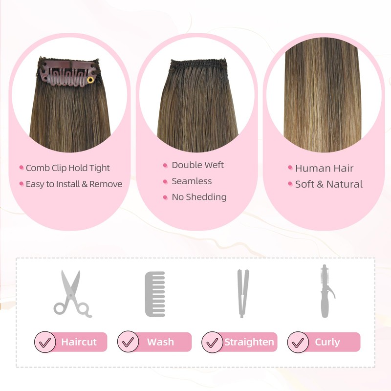 Our clip in hair extensions human hair can be curled, straightened, and washed.