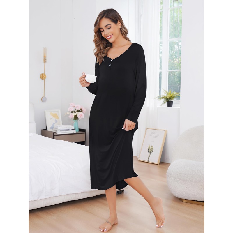 Comfy nightgown full length sleep shirt that can wear as a loose dress at home or outside, and extremely elasticity and soft fabric, it is perfect also for pregnancy.
