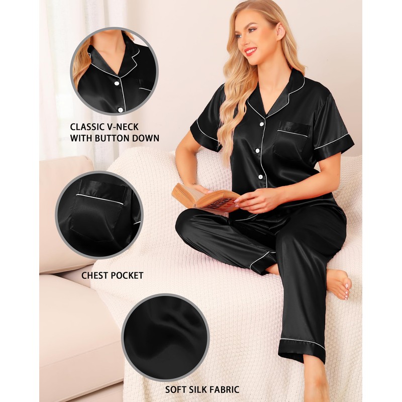 - 💞【3PCS SATIN PJS SET】This set includes a comfortable short-sleeve pyjama top, elastic waist short bottoms and long pants. With its classic and stylish for 3-piece satin pyjamas design, you can mix and match this pyjamas to suit your needs throughout the year.