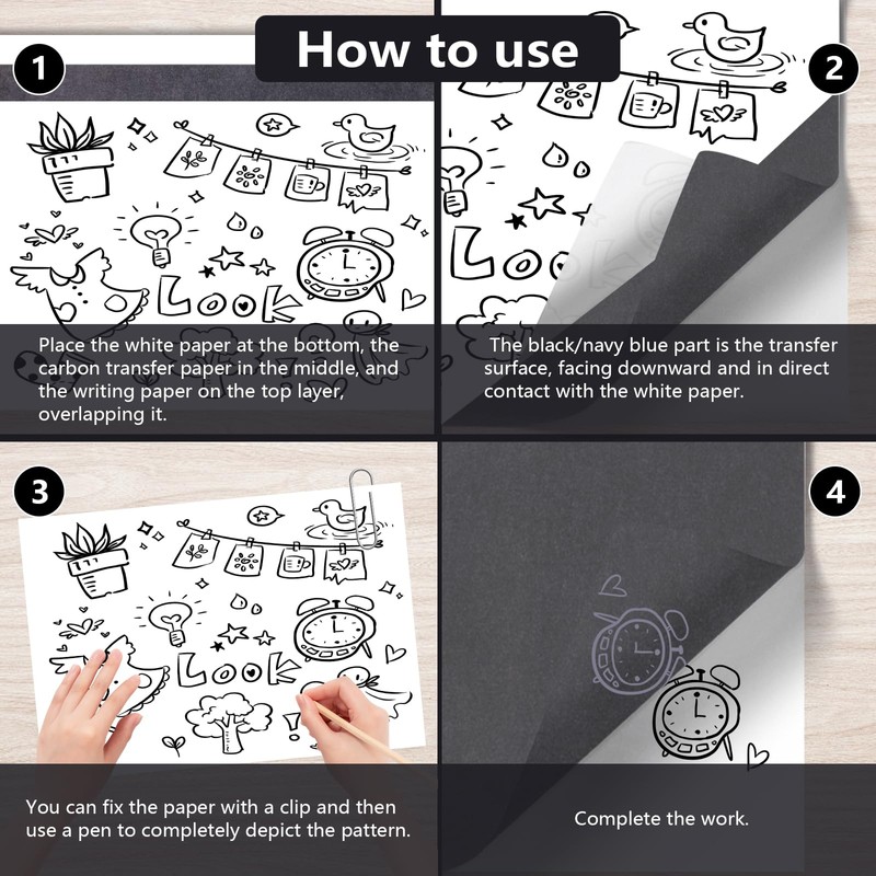 - Wide application: the transfer paper allows your designs to be conveniently transferred to different surfaces such as paper, wood, canvas, ceramic, clay, etc
